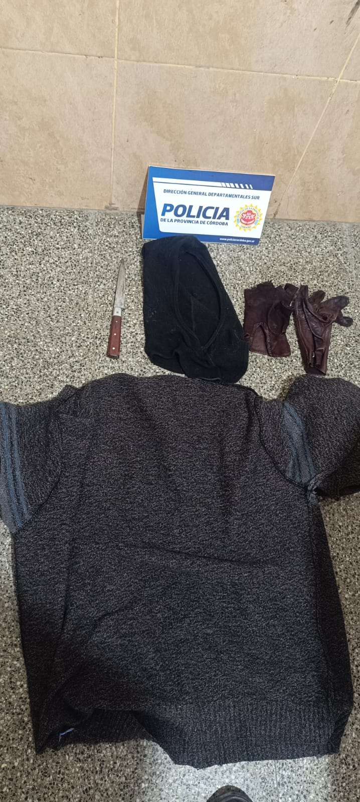 Durante el procedimiento se secuestraron prendas de vestir y un arma blanca tipo cuchillo. El detenido quedó a disposición de la justicia.