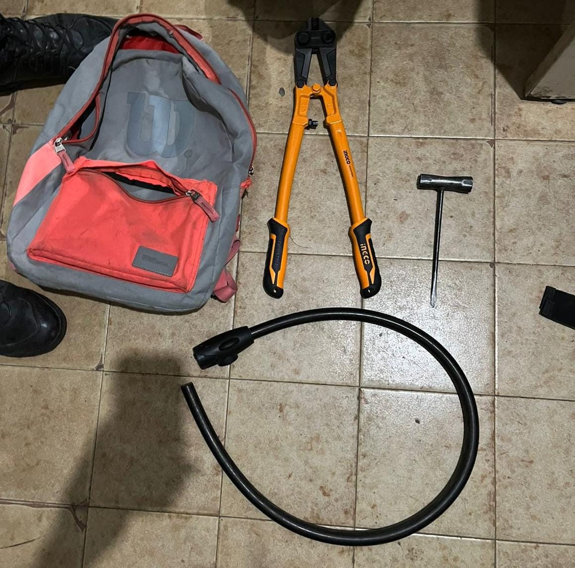 Al percatarse de la presencia policial, los jóvenes de 18 y 22 años intentaron darse a la fuga, siendo aprehendidos a pocos metros. En el lugar se constató el daño ocasionado al rodado y se procedió al secuestro de una mochila que contenía herramientas utilizadas para forzar candados, entre ellas una llave tipo ganzúa y una pinza alicate, además de la bicicleta en la que se movilizaban.