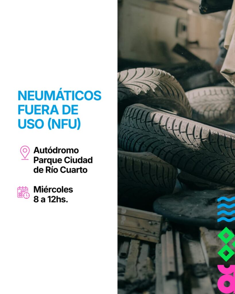 En tanto, los neumáticos fuera de uso deben llevarse al punto de tratamiento ubicado en el Autódromo Parque Ciudad de Río Cuarto. El día de atención es el miércoles, de 8 a 12 horas.