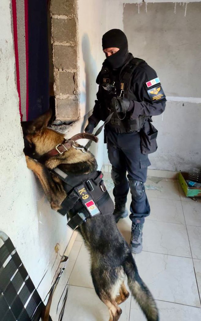 Tras un minucioso registro manual por parte del personal de investigaciones y con colaboración de los canes detectores de la División K-9, se secuestraron varias dosis de cocaína y marihuana, plantas de cannabis sativa, un arma de fuego cal .9mm con su respectivo cargador, 10 cartuchos, $1.723,400, dos automotores, tres motocicletas y elementos relacionados a la causa.