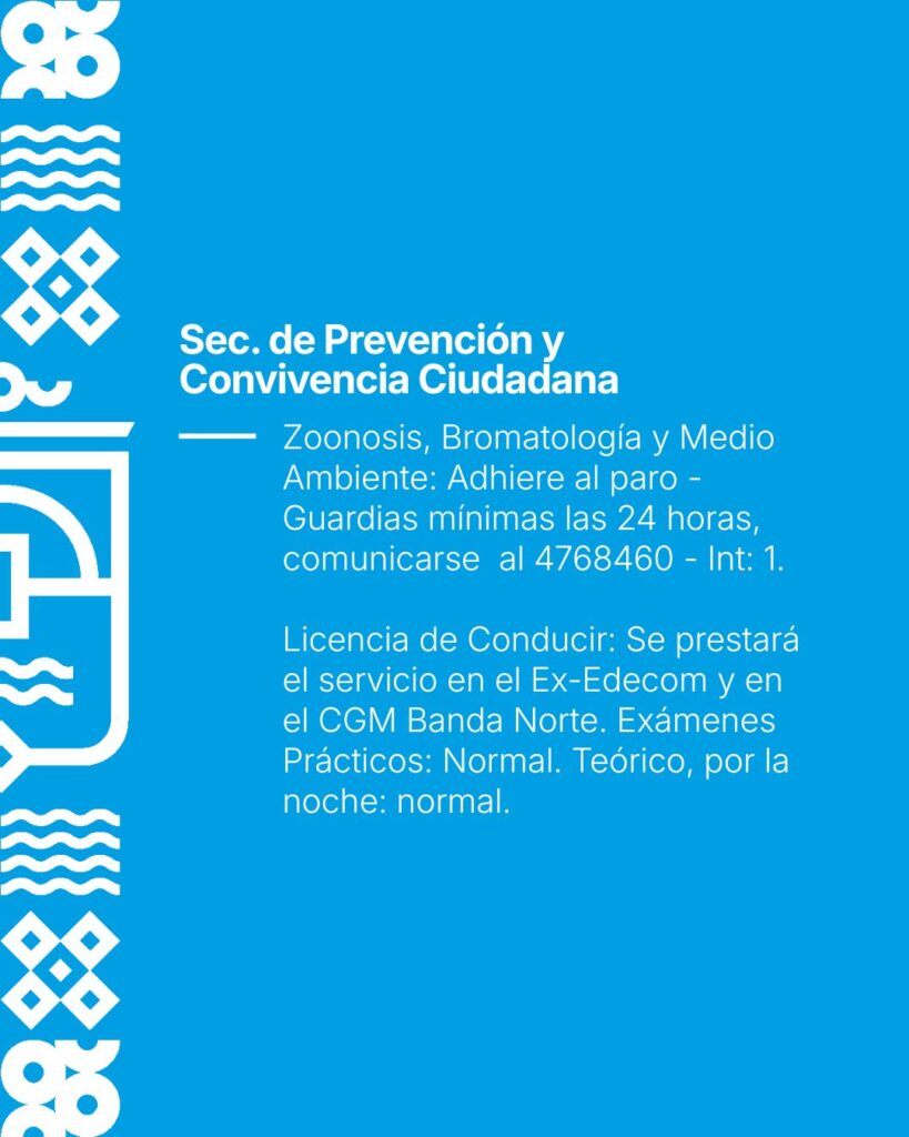 Zoonosis, Bromatología y Medio Ambiente: Adhiere al paro – Guardias mínimas, comunicarse al 4768460 – Int: 1.