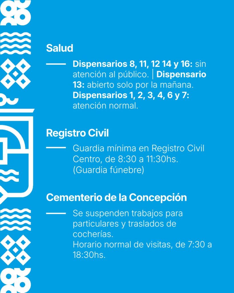 -Dispensarios: 14, 12, 8, 16 y 11 estarán cerrados todo el día. En tanto, el 13 cerrará por la tarde.