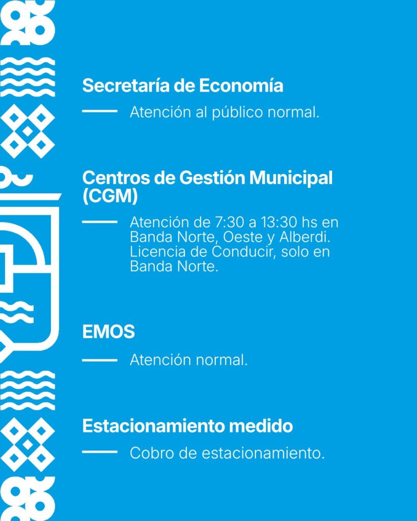 -Centro de Gestión Municipal: Atención de 7:30 a 13:30 horas en Banda Norte, Oeste y Alberdi. Licencia de Conducir, solo en Banda Norte.