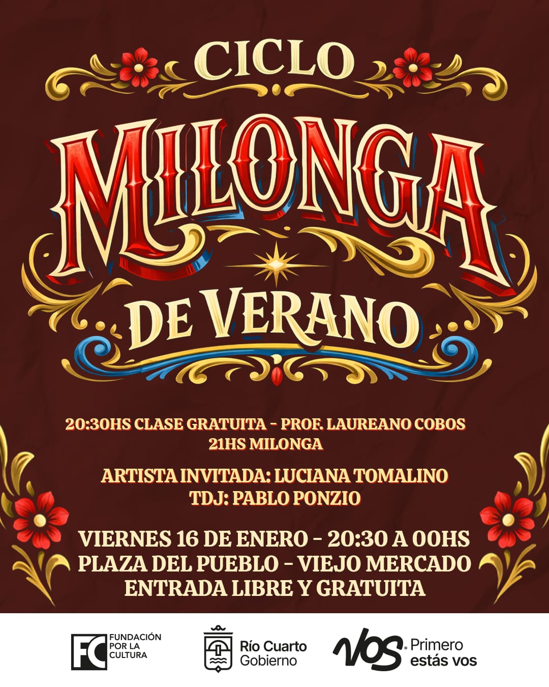 20.30 hs: Clase gratuita de tango para principiantes, a cargo del Prof. Laureano Cobos.