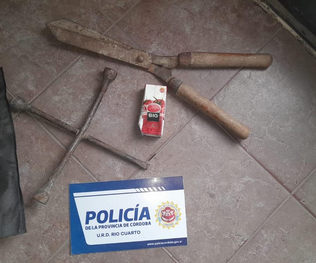 Durante el operativo se procedió al secuestro de una tijera de podar y una llave cruz.