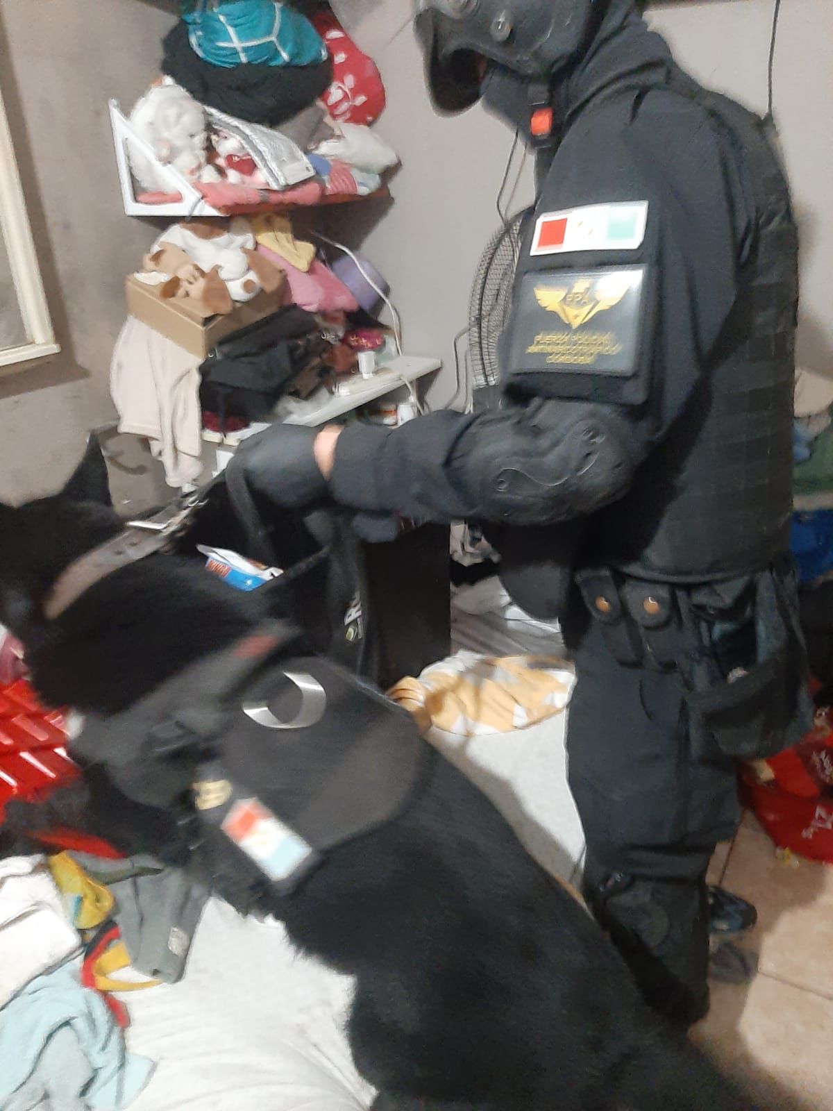 En el domicilio, con intensa labor de los investigadores y los canes detectores de narcóticos, se logró la incautación de dinero y elementos de suma relevancia para la causa.