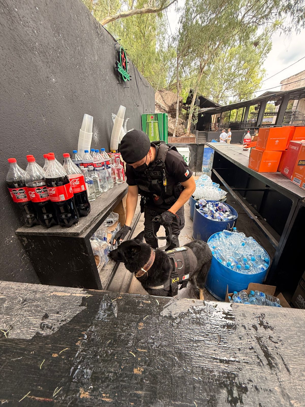Además, se contó con la colaboración de perros adiestrados en la detección de estupefacientes pertenecientes a la División K-9, que realizaron búsquedas en diversas áreas, incluyendo baños y barras.