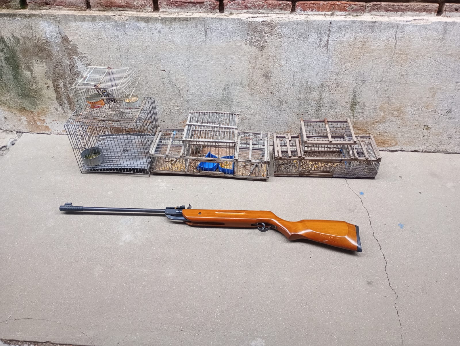 Se procedió al decomiso de un arma, jaulas, aves y el vehículo en el cual se condujeron al lugar.