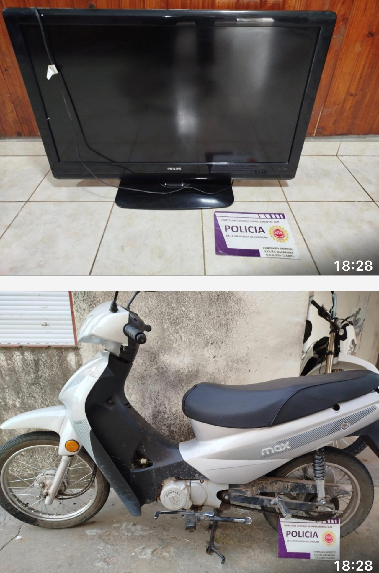 Tras una serie de tareas investigativas y bajo directivas expresas del Ministerio Público Fiscal (MPF), los efectivos procedieron al registro de la morada lográndose el secuestro de los siguientes elementos vinculados a la causa: un televisor de 43 pulgadas y una motocicleta Max de 110 cc.
