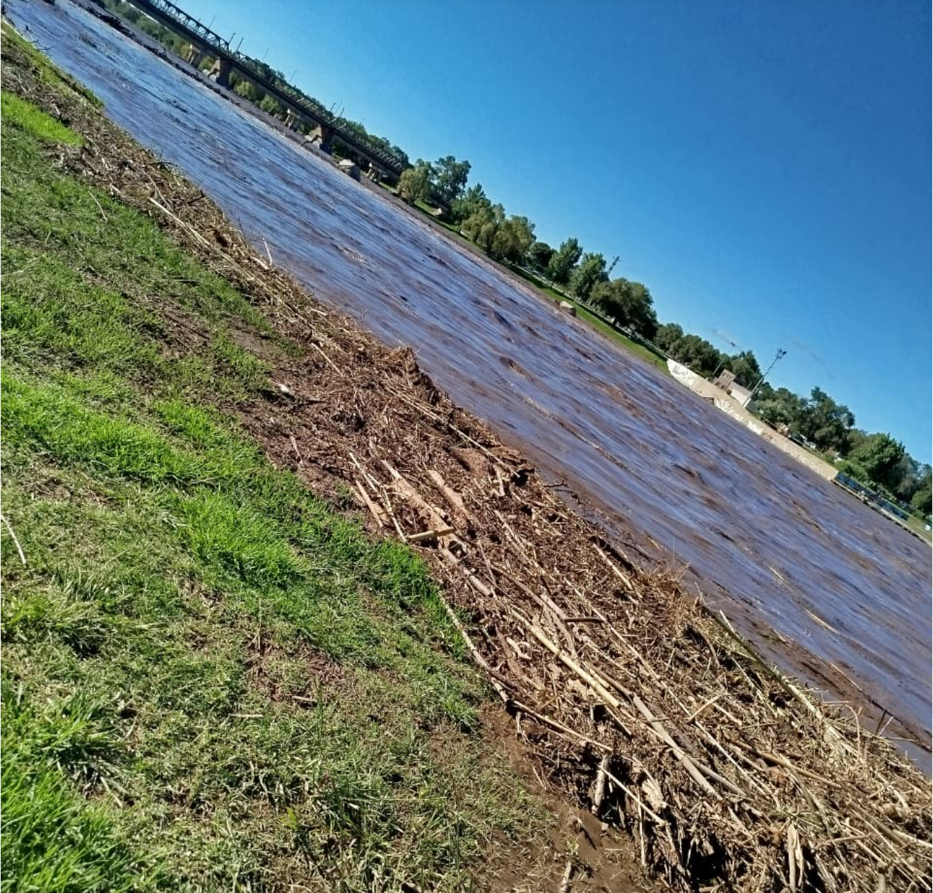 El agua llegó con gran intensidad y arrastró ramas, troncos y distintos residuos a lo largo del cauce, por lo que se mantienen tareas de monitoreo permanente en el sector.