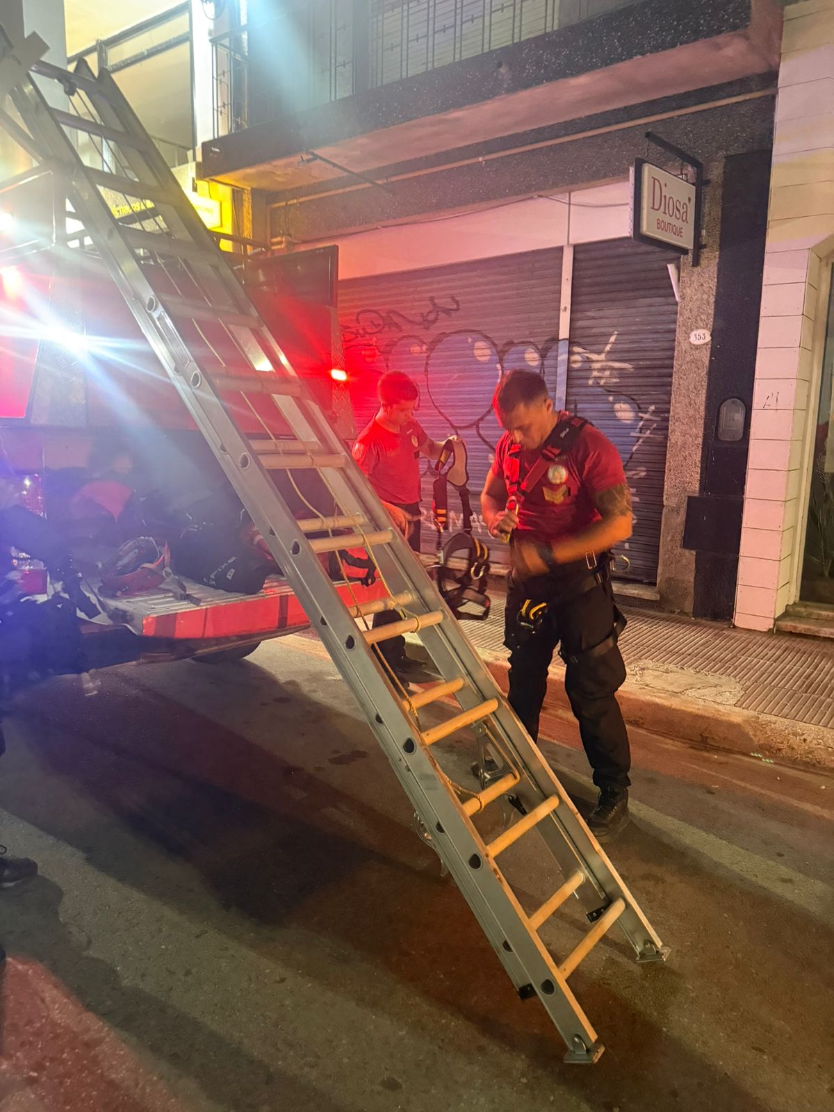 En el lugar, indicaron que un felino había trepado a una ventana, cayendo accidentalmente desde un tercer piso hacia el sector posterior del inmueble quedando atrapado entre los muros. Al constatar que el animal se encontraba con vida pero en un sector de difícil acceso, se solicitó la colaboración inmediata de las unidades especiales.